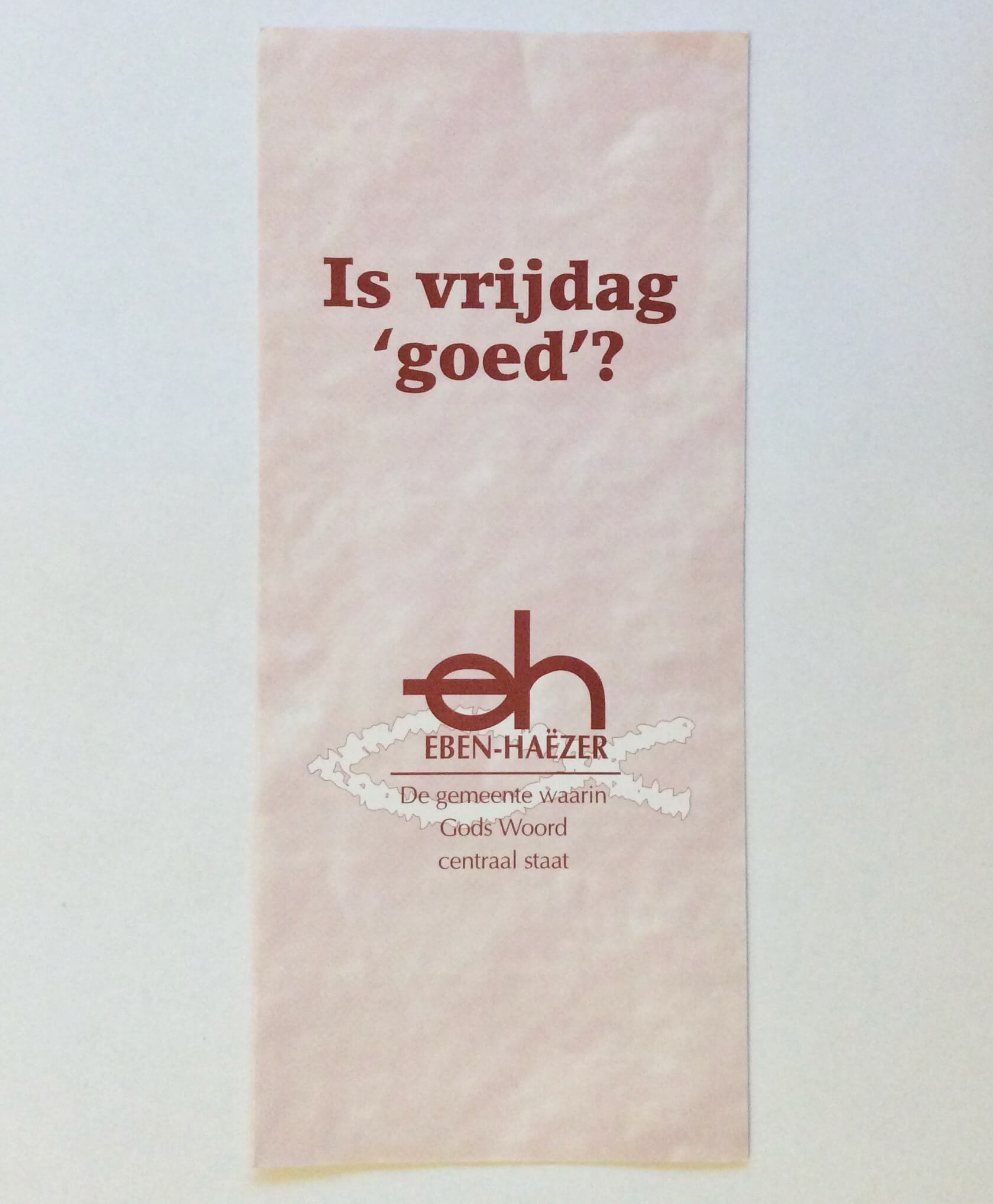 Deze uitgave en de verzending zijn gratis. Met een gift ondersteunt u Stichting EH Depot in het drukken en verspreiden van uitgaven, en daarmee de verspreiding van het evangelie. De kostprijs van deze uitgave is €0,50 en met verzendkosten wordt dit €1,33.